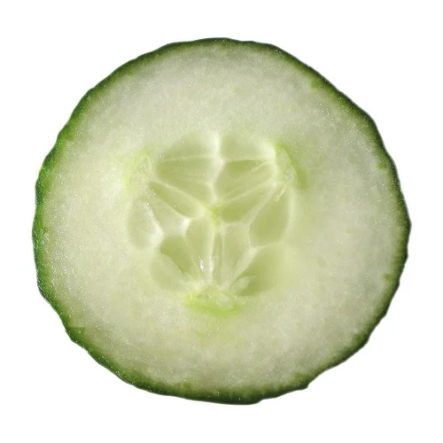 Cucumbers are one of the oldest cultivated vegetables. They are nearly 95% water! Most slicing cucumbers range between 6 and 10 inches long, while pickling cucumbers are between 3 and 5 inches long. Their outer skin can range from dark to pale green, and even whitish. The inner flesh is pale green- white and contains seeds in the center. The seeds are surrounded in a jelly-like substance that becomes more fluid as the cucumber ages. The outer skin is edible, but sometimes peeled for taste or texture.